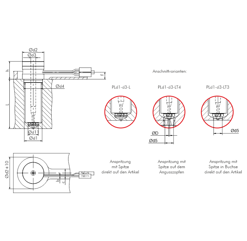 Spitze, Heizung und Thermofühler - 230V außenbeheizt