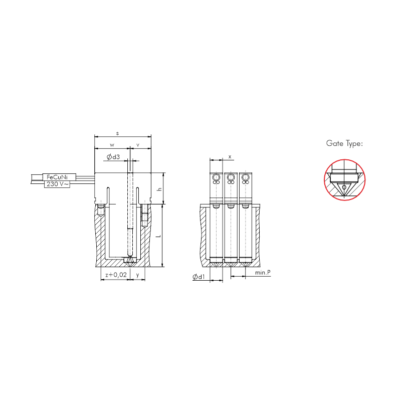 | Type | d1 | d3 | L | w | h | s | y | z | v | min_P | x |