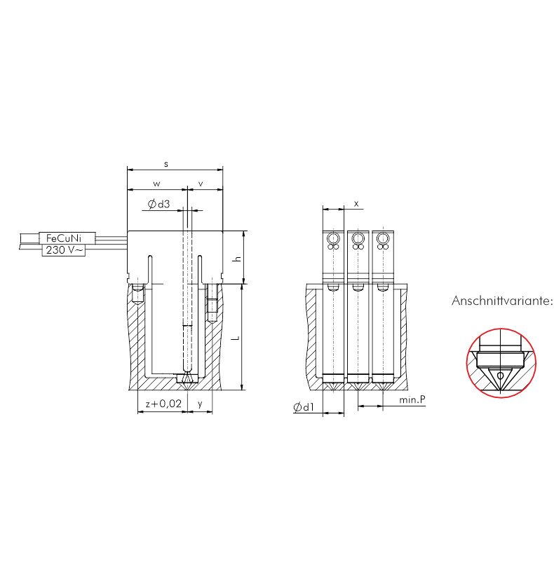 | Typ | d1 | d3 | L | w | h | s | y | z | v | min_P | x |