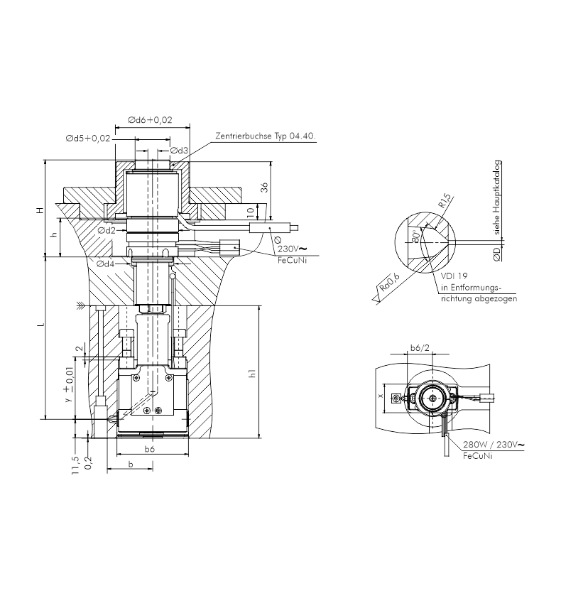 | Typ | b | b6 | n | L | d2 | d3 | d4 | Y | x | h |