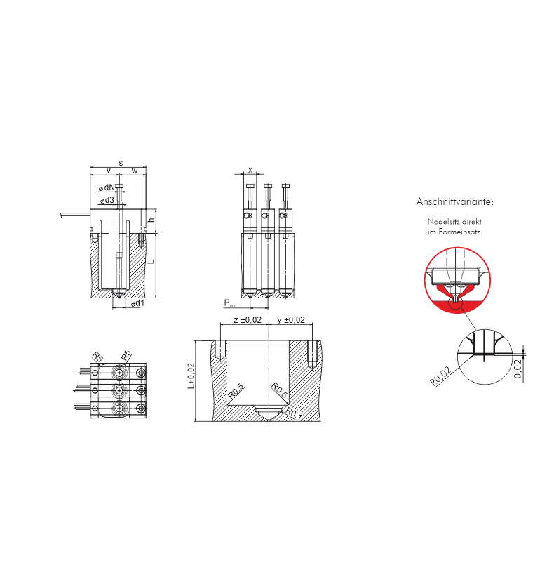 | Typ | d1 | d3 | L | dN | w | h | s | y | z | v | min_P | x |